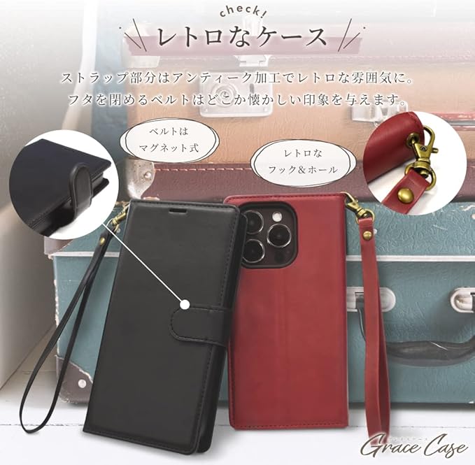 【シンプルケースの特徴】 外側はフェイクレザーを使用し、付属のストラップ , ストラップホールでビンテージ感を演出しています。更に、清潔感と高級感を感じさせてくれるケースです。