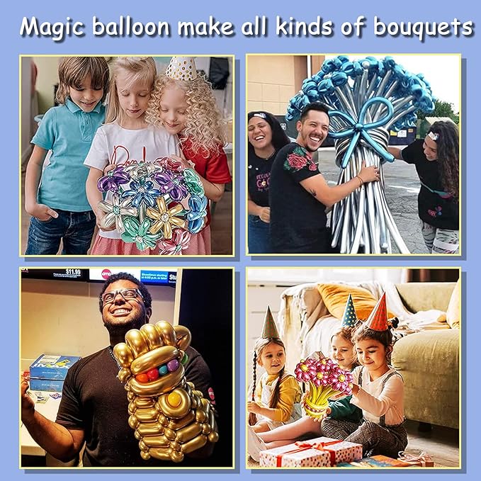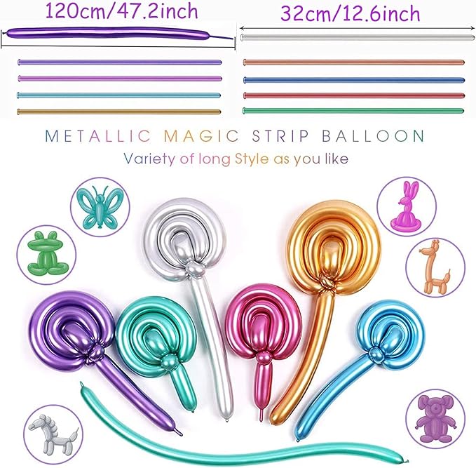 ★【素材】この細長い風船は高品質の天然ラテックスで作られ、ねじれや回転に耐える耐久性があります。そしてメタリック風船はより光沢感があって、とてもきれいです。