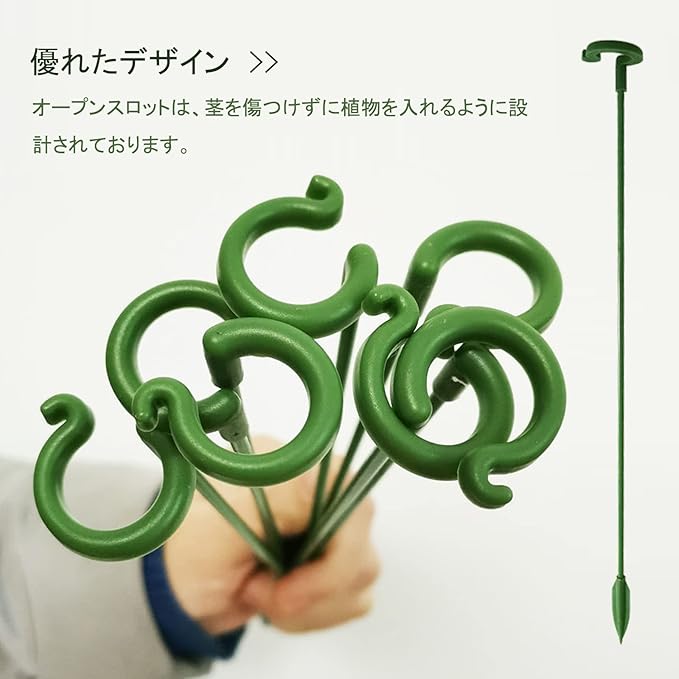 3.【実用的な植物支柱】-オープンスロットは、茎を傷つけずに植物を入れるように設計されております。ほとんどの茎が入るのに適しており、単一の茎の植物を支え、まっすぐにそして健康的に成長し、悪天候時にそれらを保護し、強い茎が互いに曲がったり絡まったりするのを防ぎ、保護します。