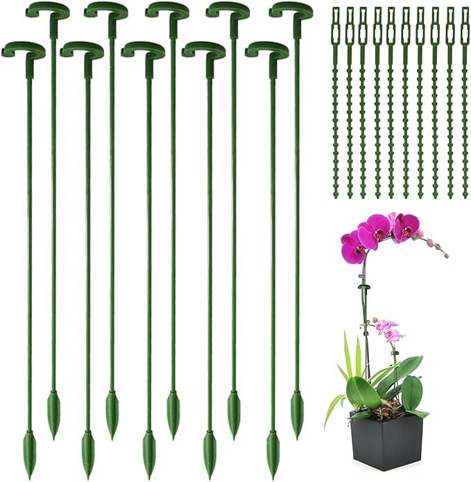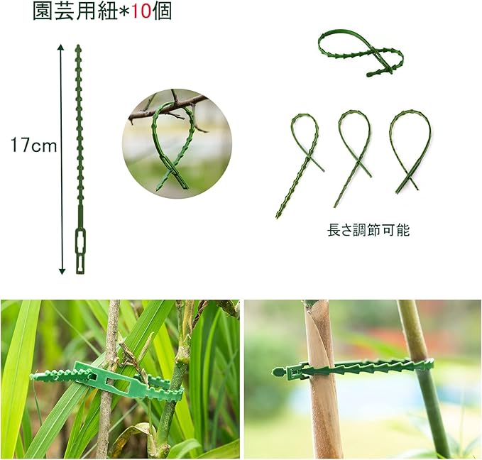 5.【パッケージに含まれるもの】37cmの園芸支柱*10本、17cmの結束バンド*10本。小さな茎を持つほとんどの花や植物に適しています。
