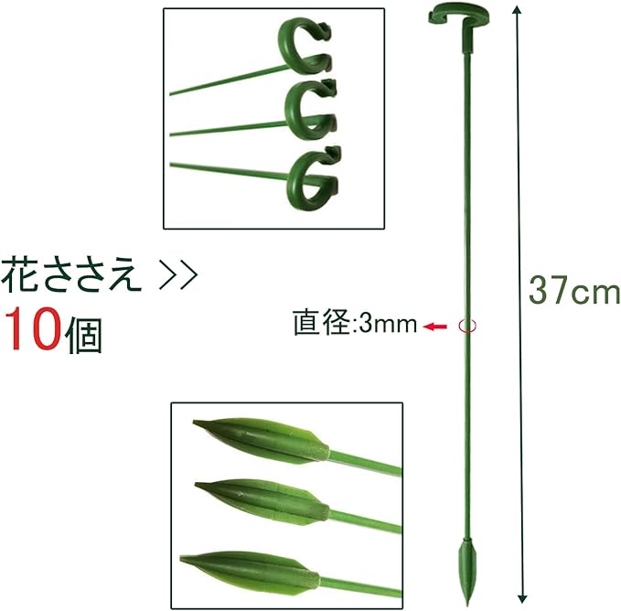 DY.2ten 園芸支柱 花支え 37cm 10本セット 植物支柱 フラワースタンド つる性植物 観葉支柱 花ささえ 誘引 支柱 植物サポート フラワー支柱 ガーデニング 農業用 園芸用 グリーン