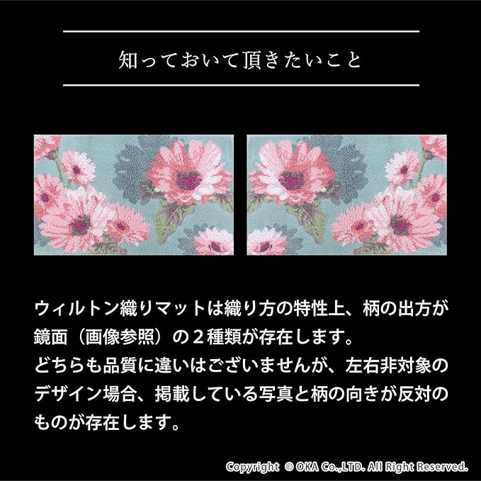 扱いやすく薄手でしっかりしたウィルトン織りマットなので、玄関だけではなく洗面前やソファー前など色々な場所でお使いいただけます。