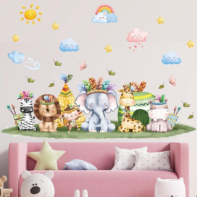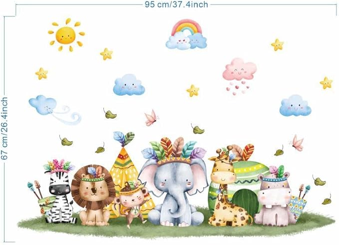 ウォールステッカー 子供 かわいい 動物 虹色の雲 ウォールすてっかー はがせる 壁紙シール アニメーション ウォールペーパー 和風 防水 子供部屋 幼稚園 保育園 託児所 壁ステッカー
