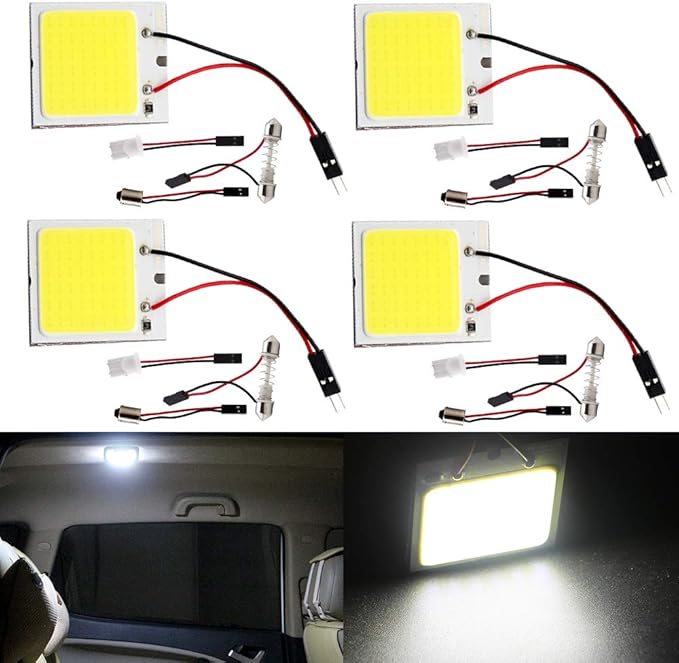 YongMing ルームランプ 48連 LED ホワイト COB 面発光 ドームライト 12V用 3種類のアダプター付き 4個