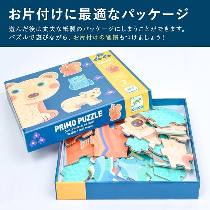 DJECO ジェコ プリモパズル イン ザ フォレスト ジグソーパズル知育玩具 幼児向け 動物 9ピース 12ピース 16ピース 2歳 3歳 男の子 女の子 幼児 赤ちゃん 出産祝い 入園祝い プレゼント ギフト おもちゃ 子供 キッズ 誕生日 運動会 ハロウィン 秋の夜長 (DJ07143)