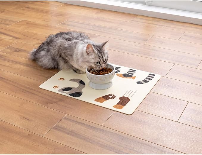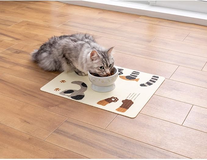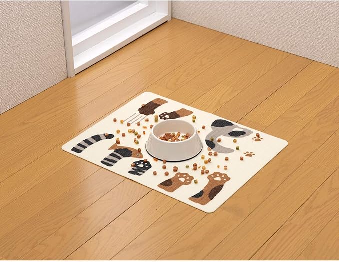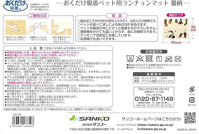 サンコー おくだけ吸着 ペット用 ランチョンマット お食事マット 給餌マット 猫柄 ネコ 【日本製 撥水 消臭 洗える ハサミでカット可】 KX-33