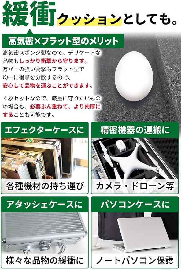 ✅【 平型構造で包み込むような衝撃吸収 】平型構造がまんべんなくクッションとして大切な物をしっかり守ります。 エフェクターケース 、 カメラケース 、 アタッシュケース 、 パソコン の収納の 衝撃保護材 として。 水槽 や バイク の リアボックス の 振動防止材 として。水槽の自作ろ過フィルター、通風孔の埃侵入防止材として。単純な製品だからこそ様々な用途にご使用できます。