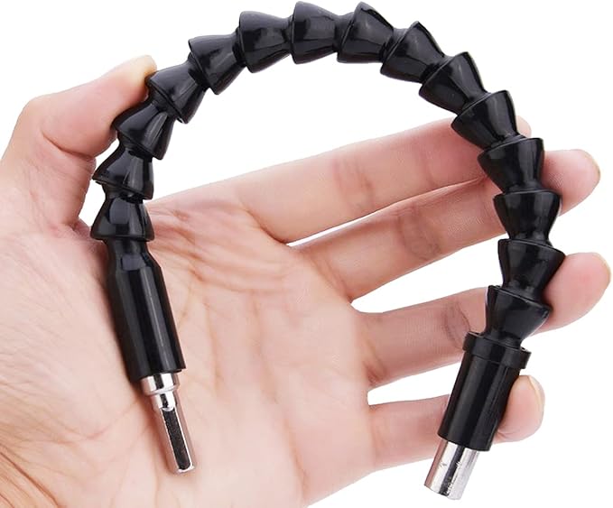 柔軟性:手の届かない奥まった所のネジ締め、穴あけが簡単にできるフレキシブルシャフトです。フレキシブル電動ドリルシャフト「蛇が如く」の登場です!!!!最大360度まで自由に曲がるフレキシブルシャフトで、狭い場所や届きにくい角度での作業が簡単に行えます。シャフトの頭部が六角形シャンクドライバービットを装着することができます。
