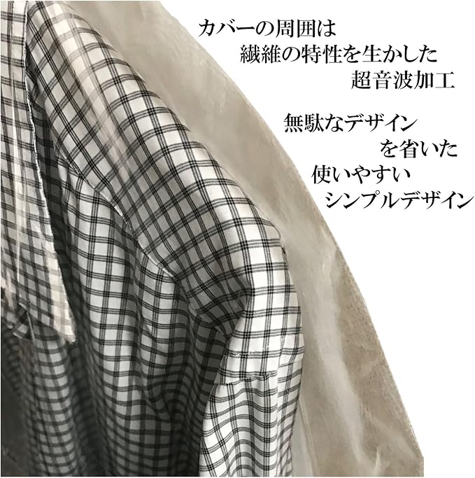カバー前面はクリアタイプで中身がはっきり見えて取り出し時に便利。カバー背面は通気性に優れた不織布製で湿気などがこもらない。便利で機能的、安心の日本製衣類カバーです。