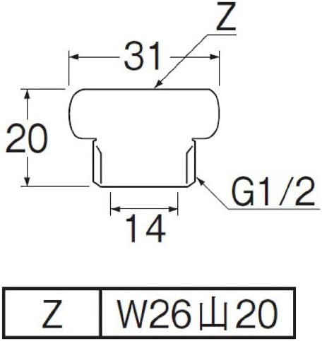 【サイズ】メネジ:W26山20 オネジ:G1/2