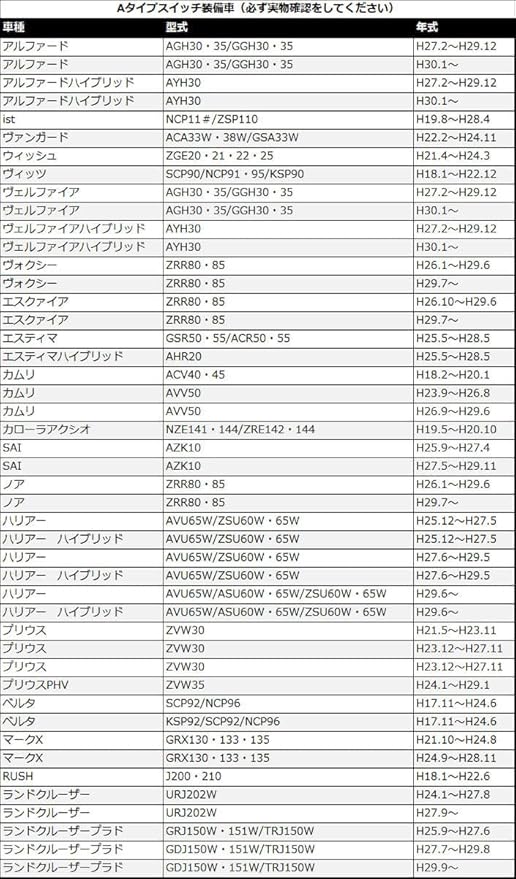 適合表及びお車のスイッチのサイズをご確認の上ご購入下さい。