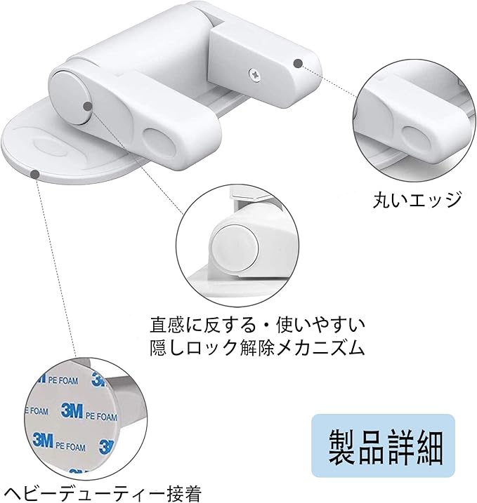 ドア、引き出し、開き戸、などをしっかりとロックし、赤ちゃんやペットのいたずらをよく防止します。