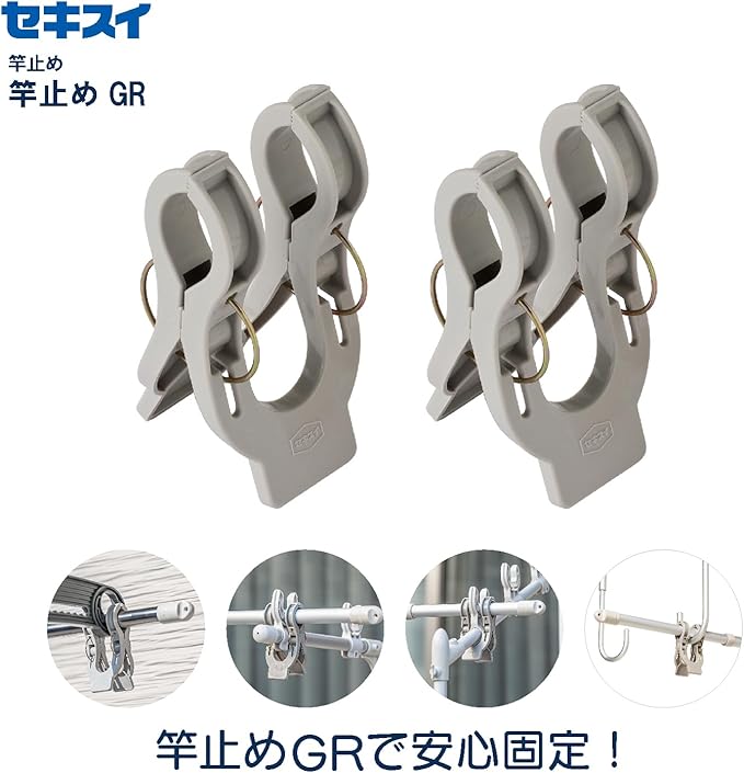 しっかりとはさみ落下や移動を防止! ○竿のズレやズレによる落下を防ぎます○洗濯ばさみ感覚で簡単に取り付けられます○大型のグリップで開閉もラクラク!