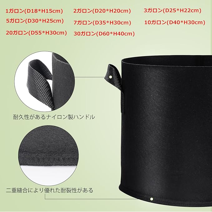 【豊富なサイズ選択】1ガロン、2ガロン、3ガロン、5ガロン、7ガロン、10ガロン、20ガロン、30ガロン混合。さまざまな植栽バッグは、さまざまな栽培ニーズを満たすことができます。