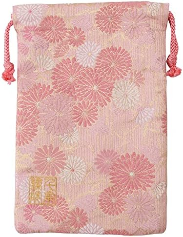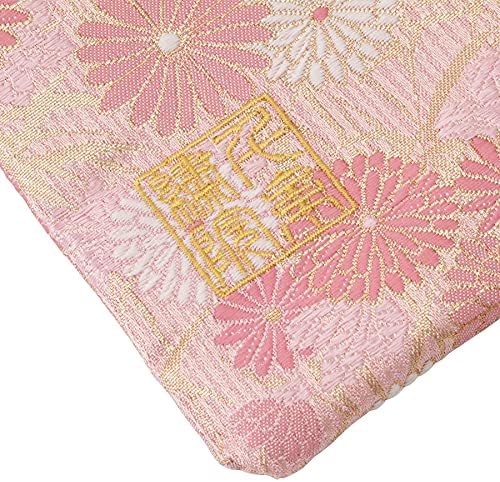 千糸繍院 西陣織 金襴 巾着袋(裏地付き) 桃笹菊 中サイズ