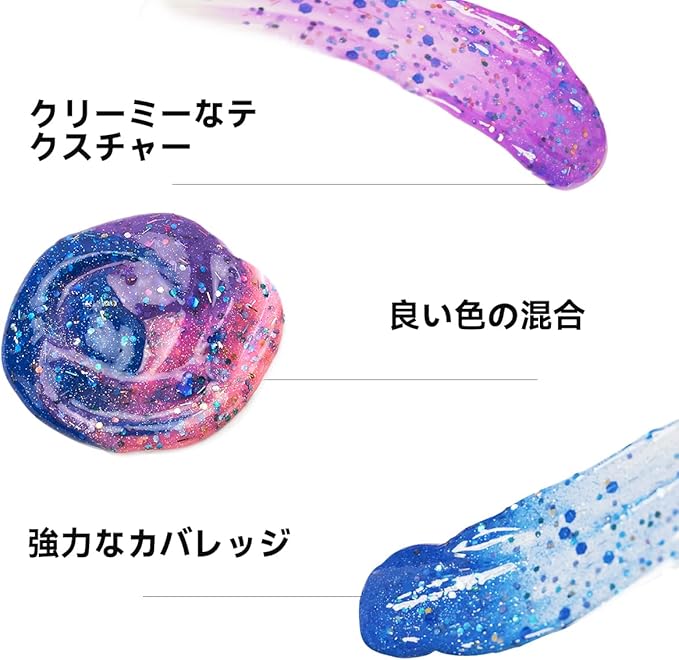 ✔️ 輝く6色入り:2.6oz/75ml大容量セットで使いやすい。 ノブキャッププラスチックチューブで、従来のフリップトップパッケージよりも密閉度が高い。