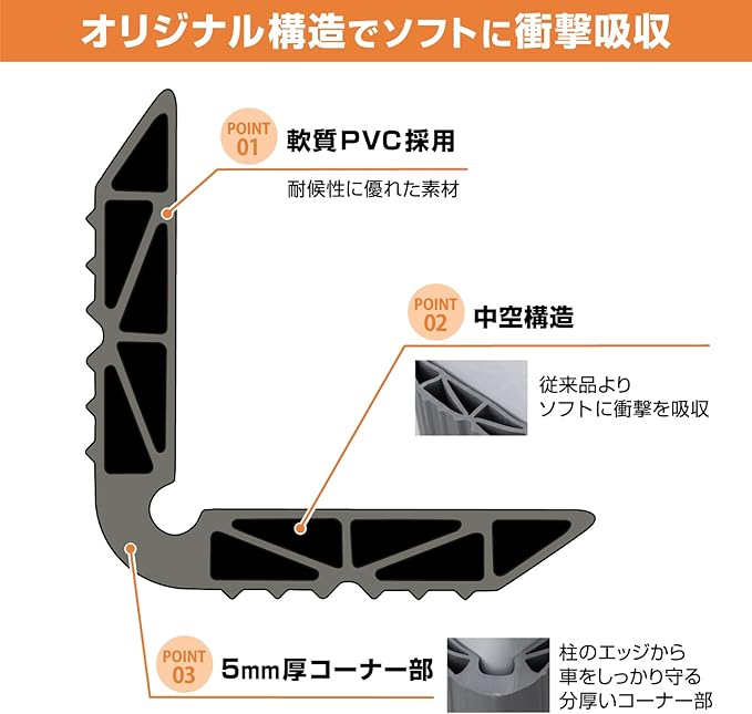 ◆ブロック塀やモルタルにもしっかり取り付けできる粗面用両面テープ付属◆オリジナル構造でソフトに衝撃吸収