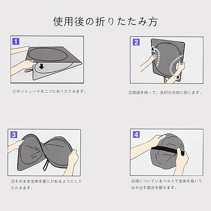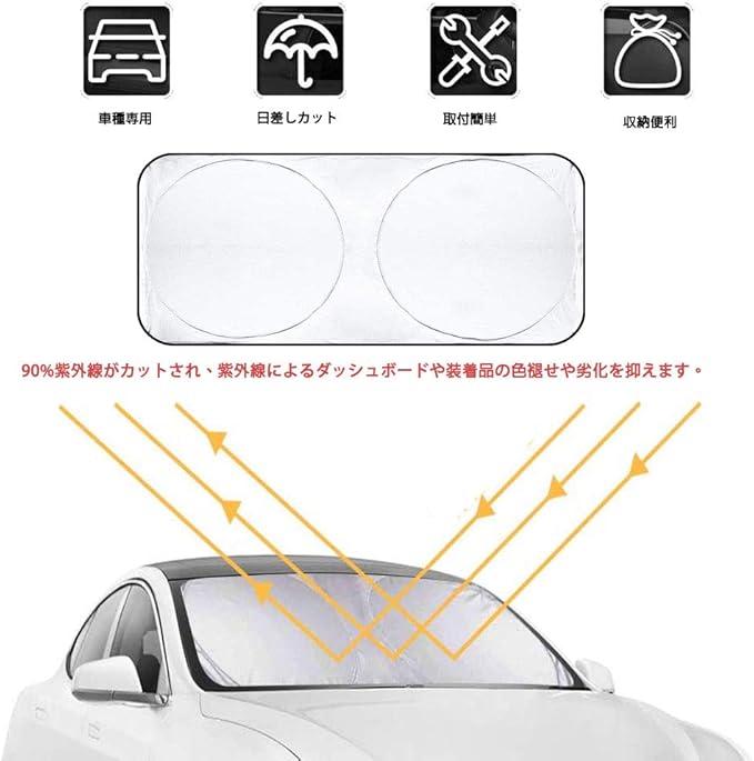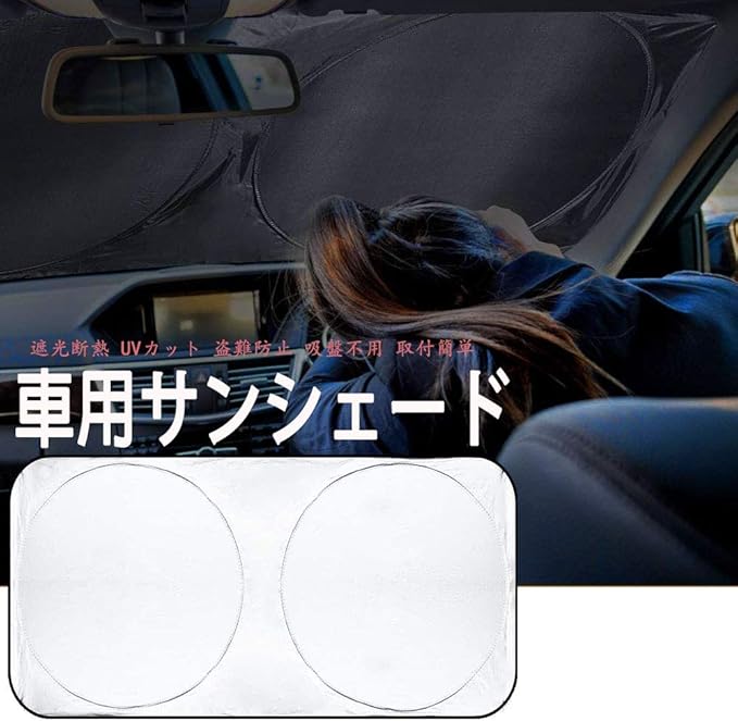 折りたたみ式の車用フロントサンシェードは、強い日差しや紫外線をしっかりカットし、車内の温度上昇を防ぎます。