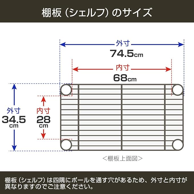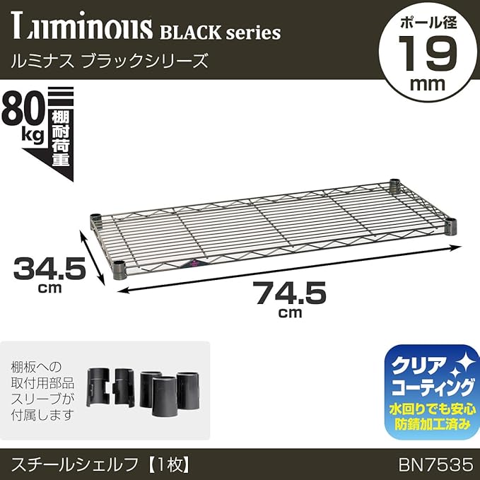 [ドウシシャ]ルミナス ポール径19mm用パーツ 棚板 スチールシェルフ(耐荷重80kg)ワイヤー幅方向 1枚(スリーブ付き) 幅74.5 奥行34.5cm BN7535 ブラックニッケルシリーズ