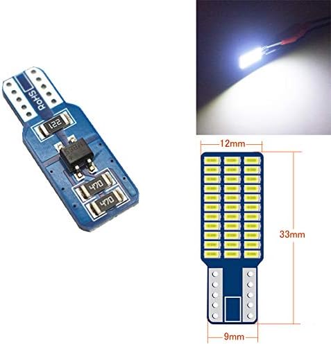 このホワイトT10バルブは、33個の3014LEDを搭載し、180 の照射範囲を実現します。CANBUSキャンセラーを内蔵し、キットには、12V DC車両に適したT10バルブが4個含まれています。