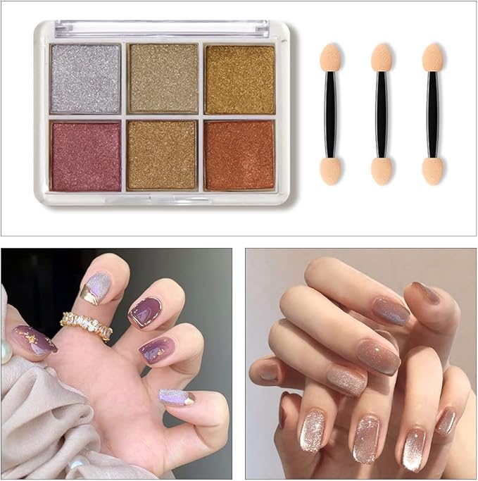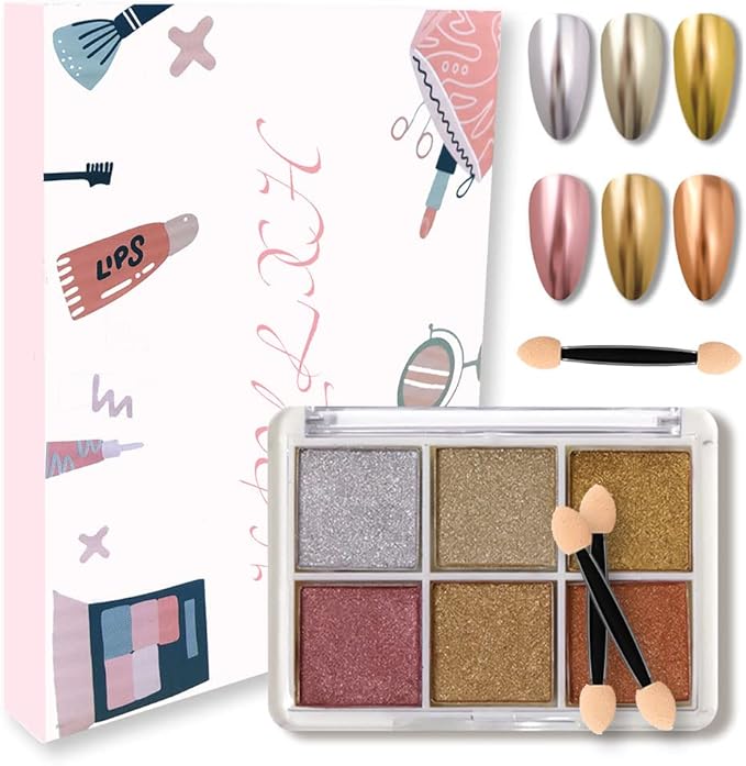 【ミラーパウダー】6色のミラーパウダーが一つのケースに入っています。様々なネイルアートが楽しめます。使用頻度の高い色が揃っています。発色が良く綺麗です。春ネイル、夏ネイル、秋ネイル、冬ネイルに適しています。