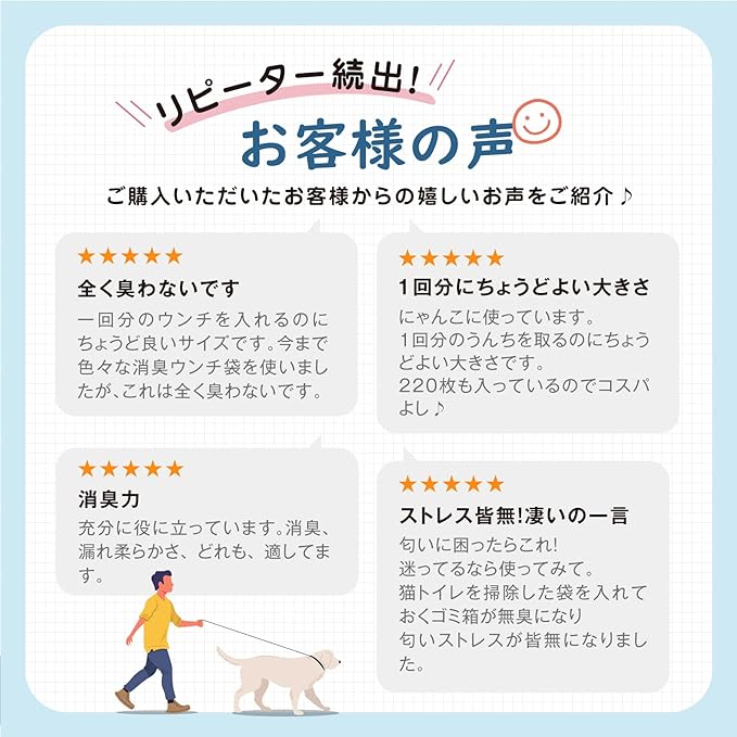 【不透明】うんち袋は中身が見えにくいブルータイプなので、人目を気にせず、愛犬とのお散歩を楽しめます。