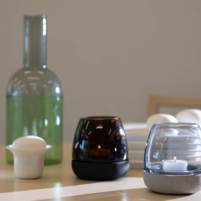 キャンドルの炎を やさしくクールに魅せてくれるコンクリートをベースに使用したガラスのキャンドルホルダー。