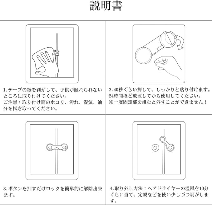 【便利生活】戸棚、開き戸、引き戸、ベビーゲート、本棚、デスク周りの引き出しなど。とりつけてお くだけで、事故を防げます。もしもの時の備えにお勧めです。
