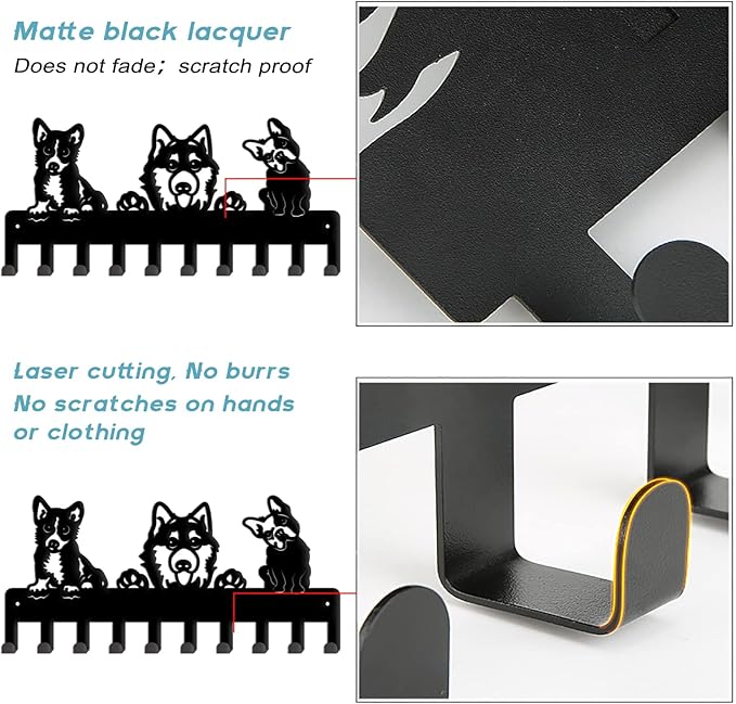 3匹の犬キーフック:このフックは犬をモチーフにしたデザインです。絵柄にはかわいい子犬が3匹含まれている。10個のフックは日常の収納ニーズに完璧に対応し、玄関、リビング、洗面所などに設置するのに適しています。犬好きの方におすすめです。