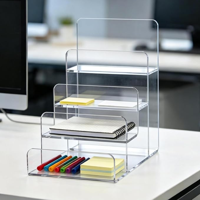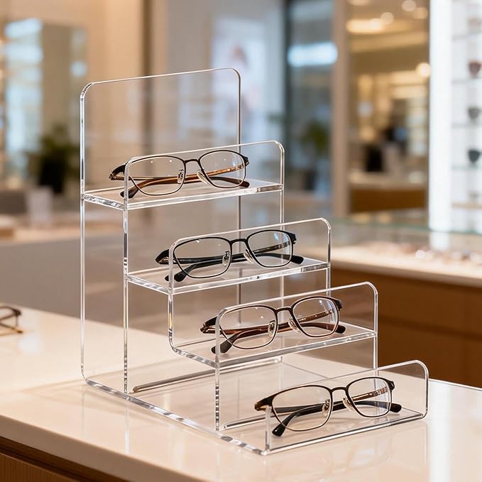 【多層収納でスッキリ】4段の透明アクリルスタンドで、財布、メガネ、アクセサリーをまとめて整理。省スペース設計で、狭いお部屋や卓上でもすっきり収納できます。