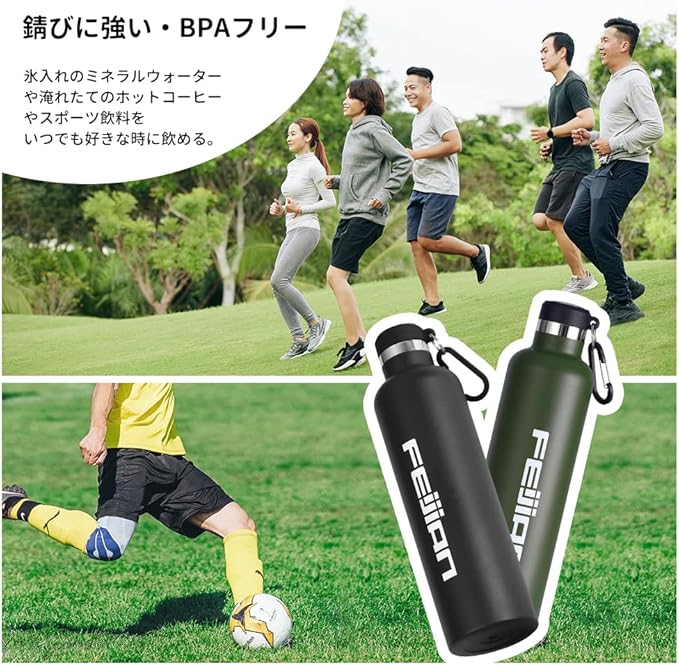 FEIJIAN 水筒 1リットル 真空断熱 保温 保冷 スポーツボトル 直飲み ステンレスボトル 1l スポーツ飲料対応 広口 水筒カバー付き 男の子 女の子 おしゃれ 大人 子供 グリーン