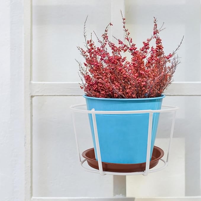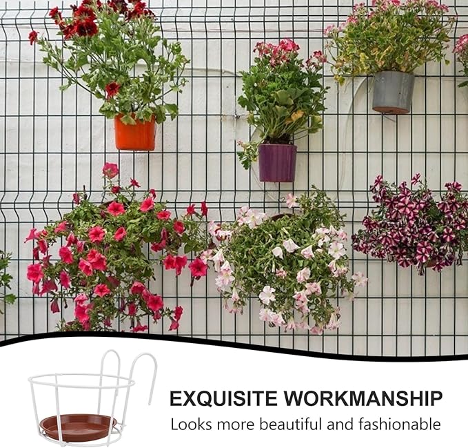 Cabilock 3個手すりプランターフラワーポットホルダーハンガー金属フェンスレールフェンスプランターバルコニーポーチパティオ家庭菜園白