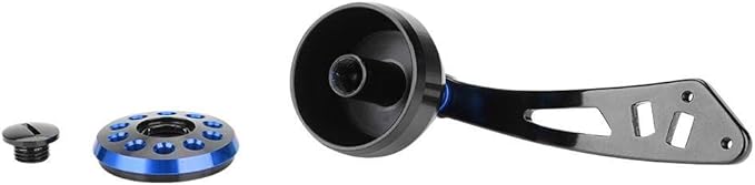 釣りリールハンドル ノブパワーハンドルグリップ フィッシングリールハンドル CNCノブ 付属品 交換部品 アクセサリー(Black+Blue)