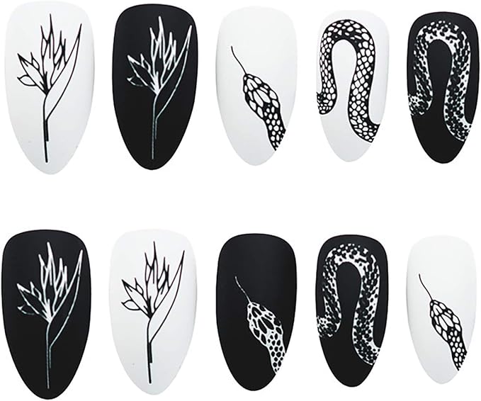 バレリーナネイルチップ、黒と白のスネークプリントのネイルチップ、防水性があり、ネイルチップから落ちにくい、サロンプロフェッショナル&家庭用,Clear