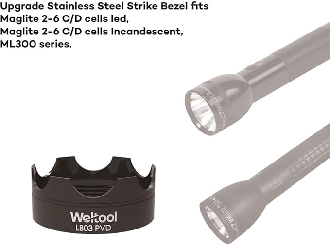 Weltool LB03PVDフラッシュライト保護用懐中電灯ストライクベゼルブラック For Maglite C/D ML300L & ML300 LX用