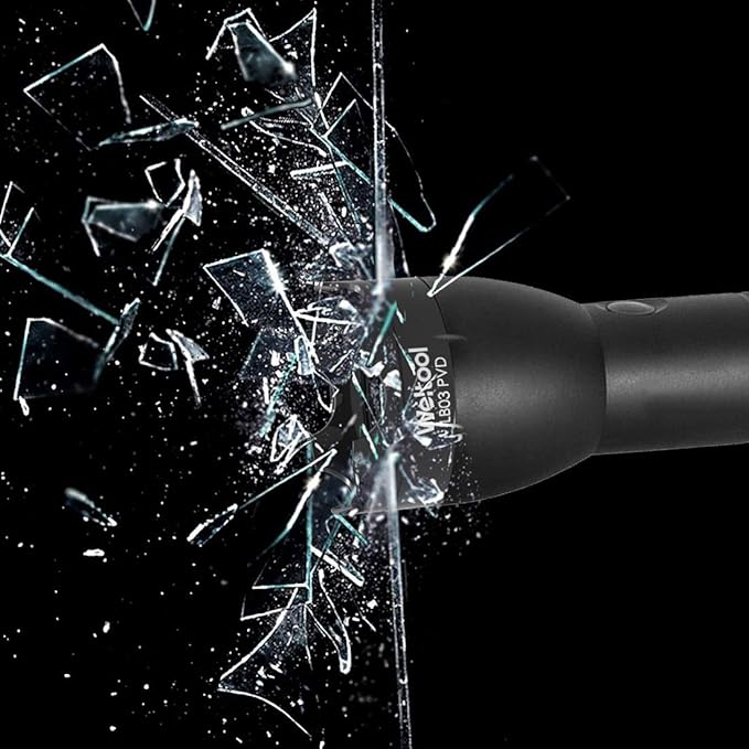 【突発事態に対応】上部には6つの攻撃歯がデザインされており、自衛時や緊急時にガラスを割るのに適しています。PVD黒表面,アルミ合金よりも陽極酸化に強いです。