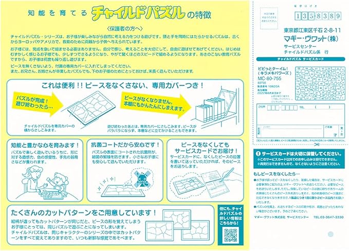 パズルピースを誤って飲み込まないようにご注意ください。窒息などの危険がございます。