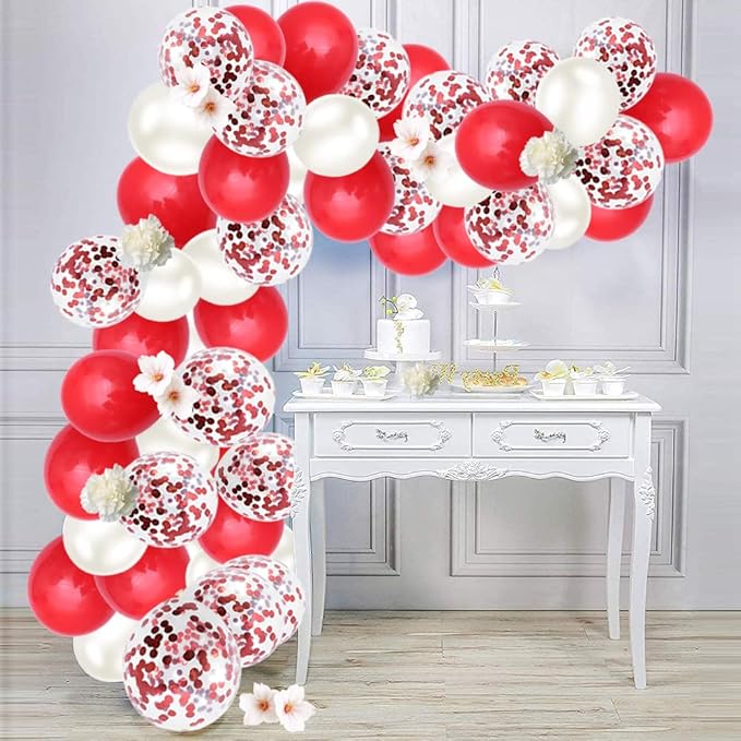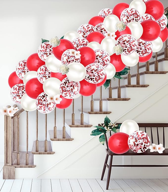 EXGOX 90個 風船 バルーン レッド お誕生日 ゴム風船 セット 飾り付け happy birthday バルーン 吹雪入れ 誕生日会 母の日 バースデー 卒業 開店 記念日 結婚式 成人式 100日祝い 飾り10インチ (レッド系)