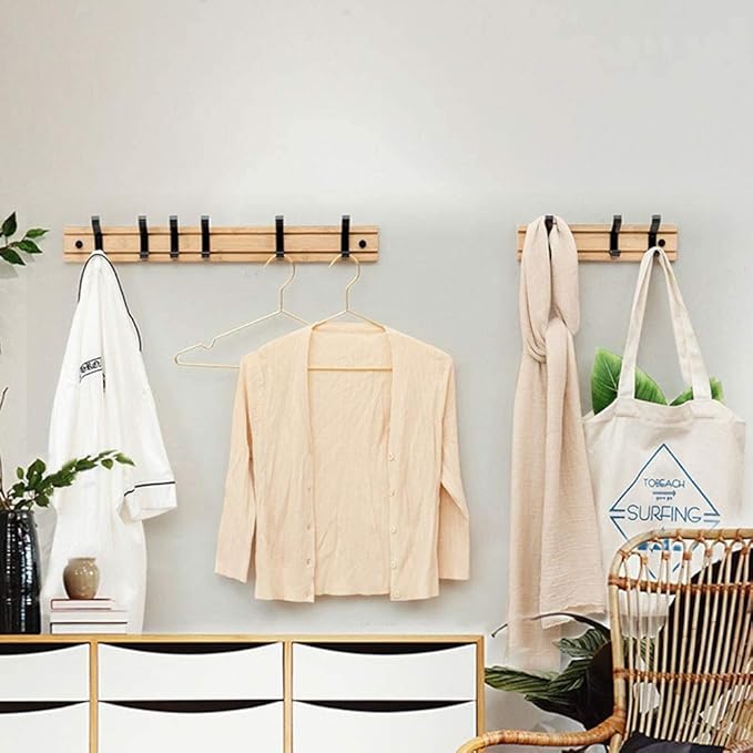 【可動式&収納フック】フックは自由に移動可能で、衣類のサイズに合わせて間隔を調整できます。ジャケット、スカーフ、バッグ、傘、タオルなど様々なアイテムをすっきり収納でき、とても便利です。