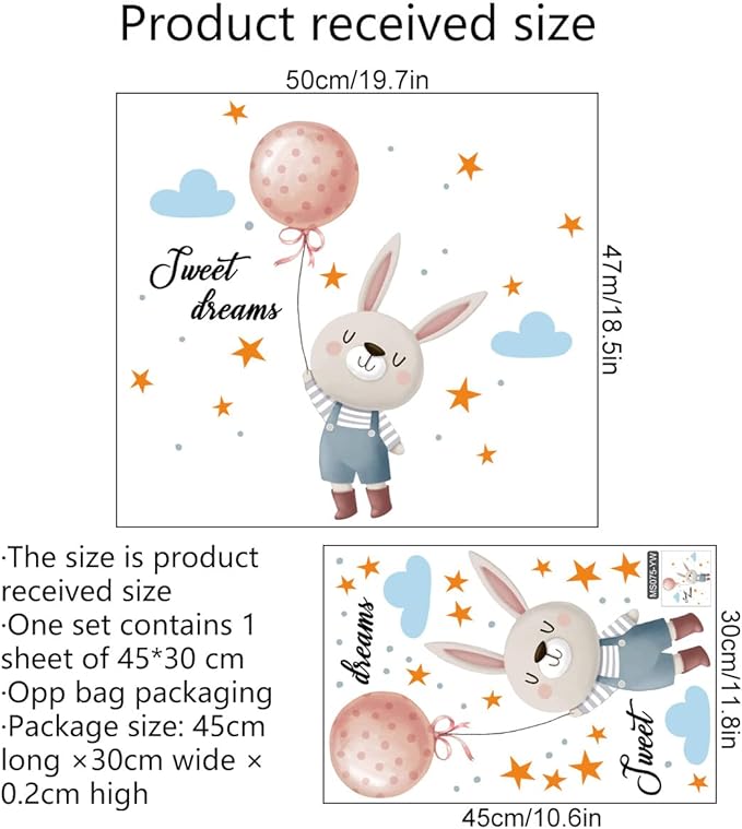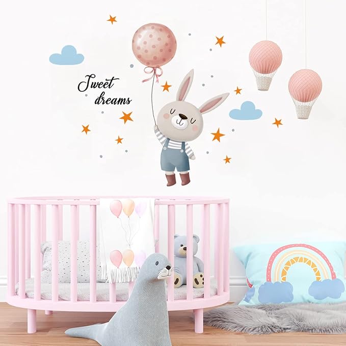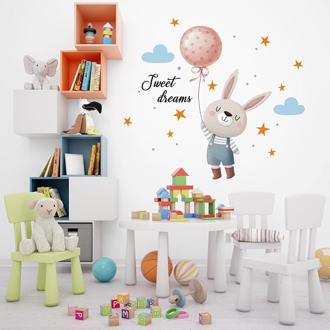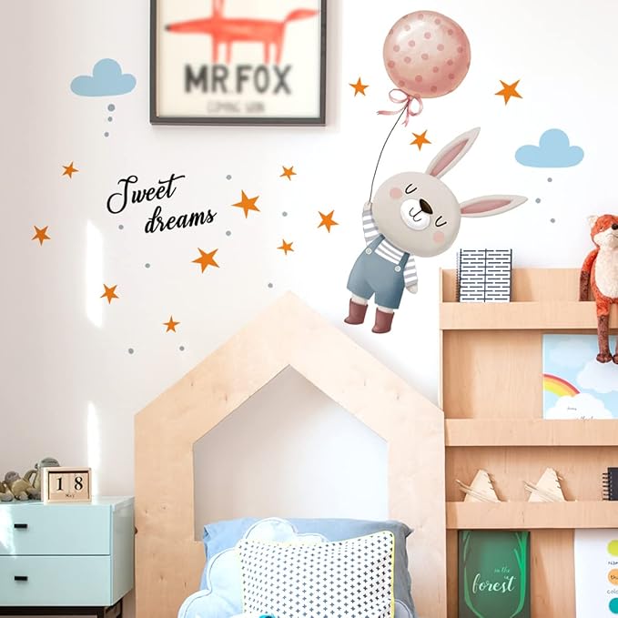 ウォールステッカー 子供 かわいいうさぎ 風船 雲 星 壁紙シール 防水 ウォールすてっかー 幼稚園 保育園 託児所 ベッドルーム ウォールペーパー toy room wall ウォールデコ