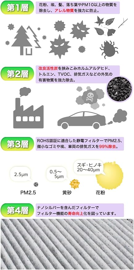 エアコンフィルター 4層 Air-06G ADバン Y11 ウイングロード セレナ C24 X-TRAIL エクストレイル T30 T31 T32 T33 ファミリア アウトランダー デリカ D5 FJ4999