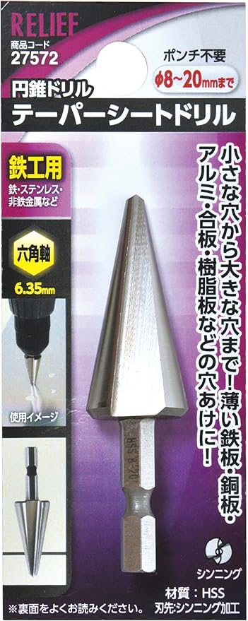 イチネンアクセス RELIEF(リリーフ) 鉄工ドリル 六角軸 テーパーシートドリル φ8-20mm 27572 鉄工用 HSS