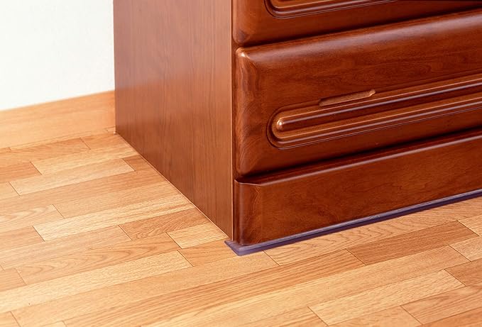 ●家具を少し手前に引き出し、後ろの壁に当たるまで傾け、手前下部の隙間に当商品を挟み込んでください。※この際に手や足を挟まないように気を付けてください。※壁および家具にキズのつく恐れがありますのでご注意ください。商品を挟み込んだら、家具を揺らしてしっかり固定されているかご確認ください。