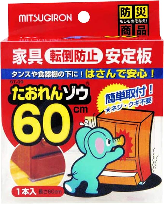 ミツギロン 家具転倒防止 安定版 耐震板 60cm クリア 1本入 日本製 地震 防災 耐震マット たおれんゾウ ST-09