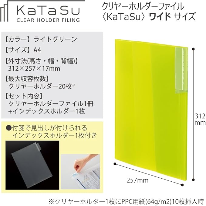 コクヨ ファイル クリヤーホルダーファイル KaTaSu A4 ワイド ライトグリーン フ-KCW5720LG