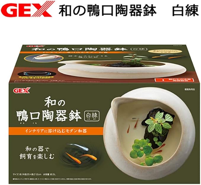 ※本製品は屋内観賞魚飼育専用です。他の目的には使用しないでください。※本製品は陶器製です。取り扱いには十分ご注意ください。※割れ、欠け、ひび割れが発生した場合は、すぐに使用を中止してください。※テレビ、ステレオ、パソコンなど電気製品の上や近くに置かないでください。※本製品を設置する場合は水平が保たれる安定した平面を選んでください。※本製品を高所から落下させるなど、強い衝撃を与えないでください。※排水するときは、鉢内のアクセサリー類を取り出してください。※ヒーターをご使用の際は、GEX製観賞魚用ヒーター10Wタイプをご使用ください。水位が低下しヒーターが空中に露出すると、火災の原因になる場合があります。※ヒーターをご使用の際は、エアレーション等で鉢内の水を撹拌してください。※エアレーションをするときは、水はねにご注意ください。※生体の種類や組み合わせによって、飼育方法や飼育できる匹数、必要な飼育器具が異なります。くわしくは、生体をお求めになられた専門店などにご相談ください。