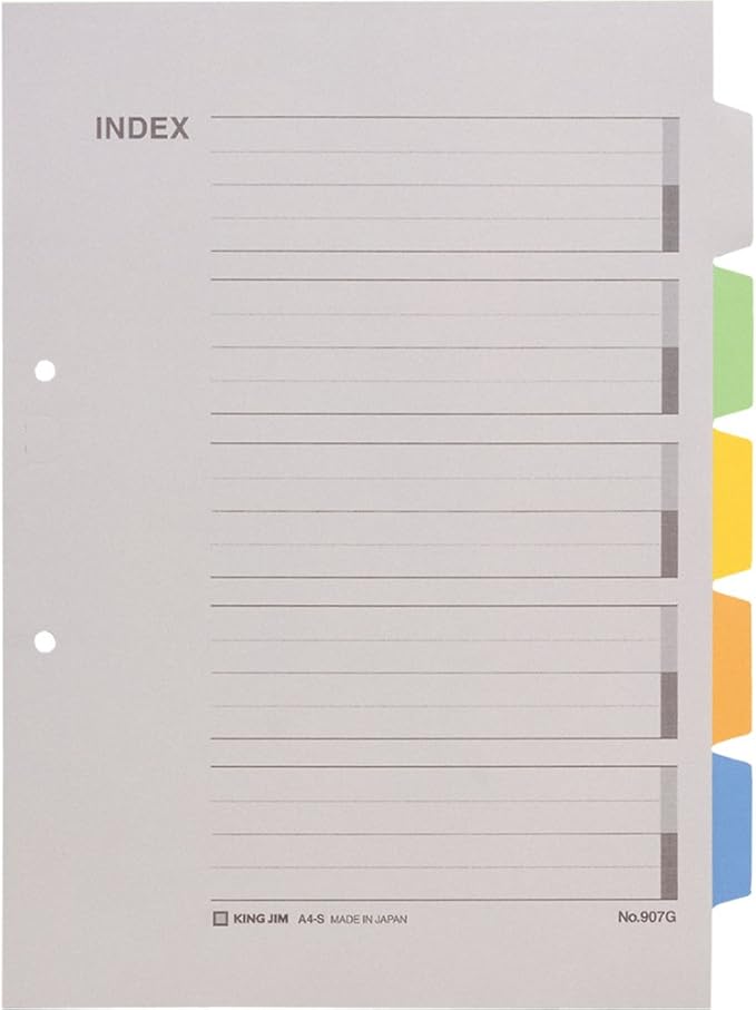 書類の分類・整理に。1山目にインデックスガイドが印刷されている、扉紙のないタイプです。