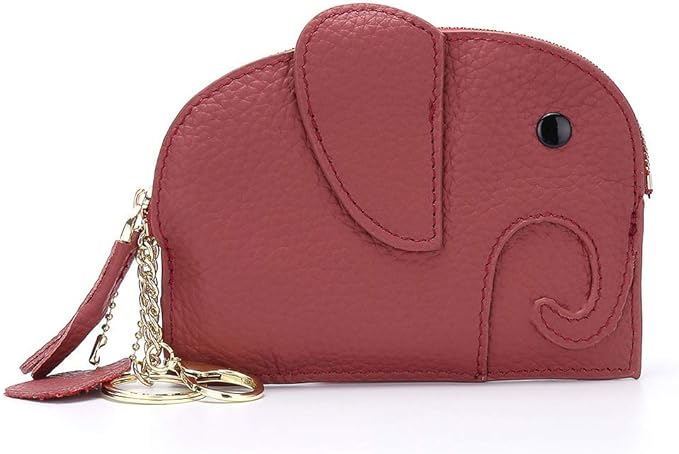 小銭入れ コインケース 可愛い ミニ財布 ゾウ 薄型 牛革 (ブラウン)