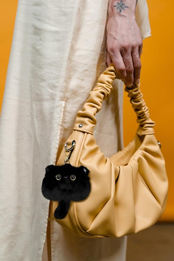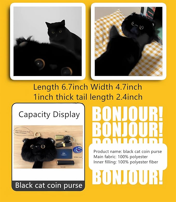 [HUIJUFU] かわいい猫のぬいぐるみ小銭入れキーホルダー女性の誕生日プレゼント(黒色)