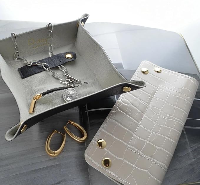 【旅行に便利。トレーになるアクセサリーケース】四隅のホックを留めれば、オーバーナイターとしてトレーに。散らかりがちなアクセサリーや時計、キーなどを、一か所にまとめておけて、お部屋で小物の行方不明なし。